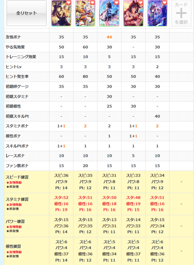 これでもかってくらい贅沢な内容やな、でも金2種類のサポカ出始めたからコイツらも型落ちなんやろな