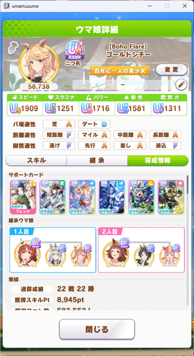 差3と追込6で試してたけど終盤前で抜かれても全然迅速果断が全然出なかった