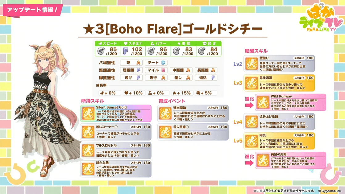 【ウマ娘】☆3育成ウマ娘別衣装「ゴールドシチー」が実装決定!!中盤盛り盛りのラヴズに似た性能で強そうだけど順位条件がネックか…?