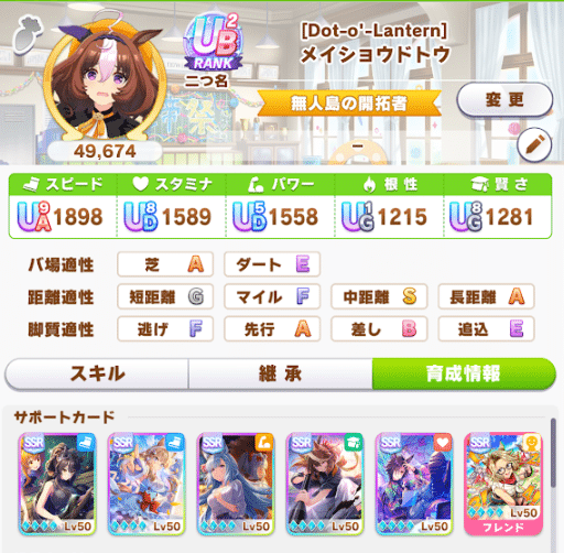 編成してないステ伸びんなぁ…単にサポ貧なのもあるけど