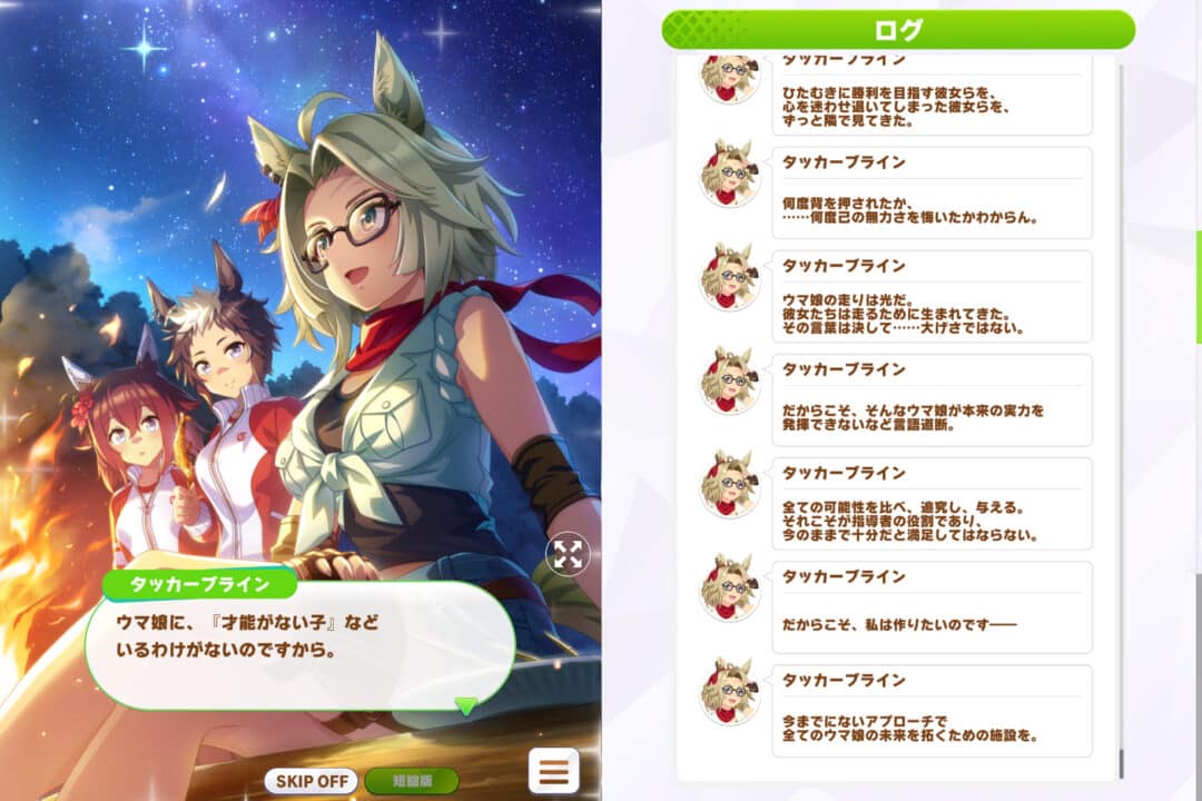 お出かけイベントでシナリオキャラを深掘りしてくれるのが好き。畑の理事長とかもよかった。