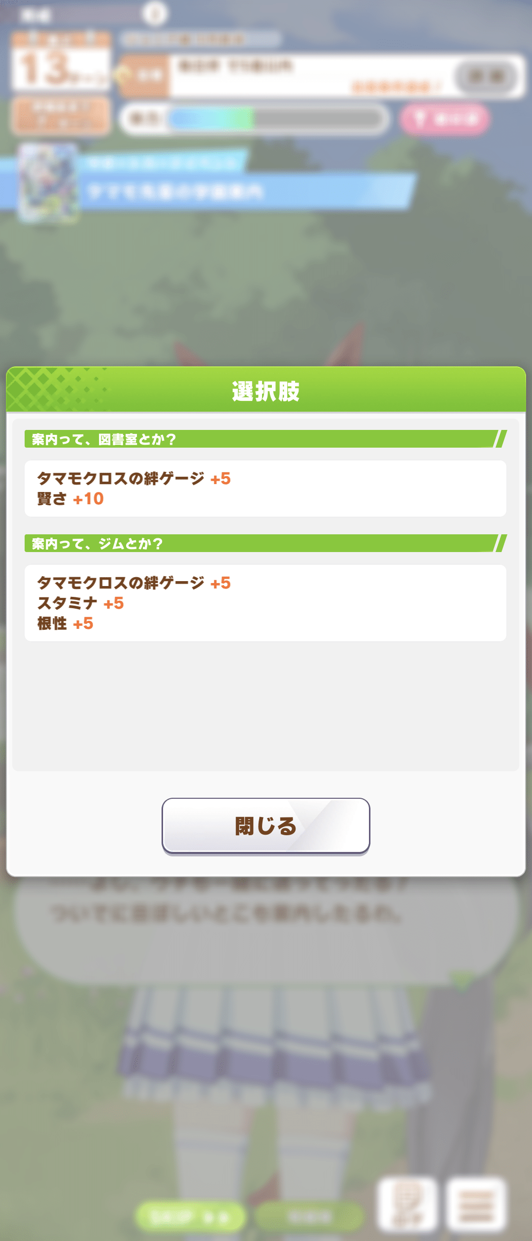 【ウマ娘】無人島に来てからは割と選ぶようになった体力回復orステ(スキル)のイベント選択肢。