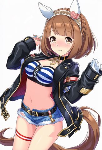 【ウマ娘】シチーの勝負服を着たユキノ。「改めてとんでもない格好だなこれ…。」