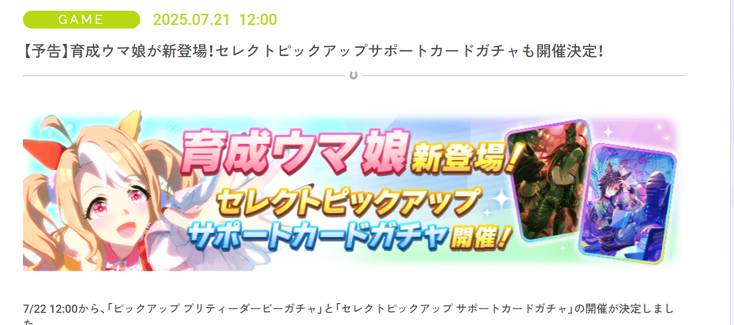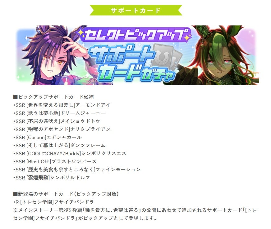 【ウマ娘】7/22のガチャ更新は☆3育成ウマ娘「フサイチパンドラ」とセレクトガチャに決定!!フサパンは宝塚もいける2200m特攻か!?