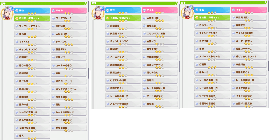 距離によってはまだ因子テコ入れの前の因子使ってる