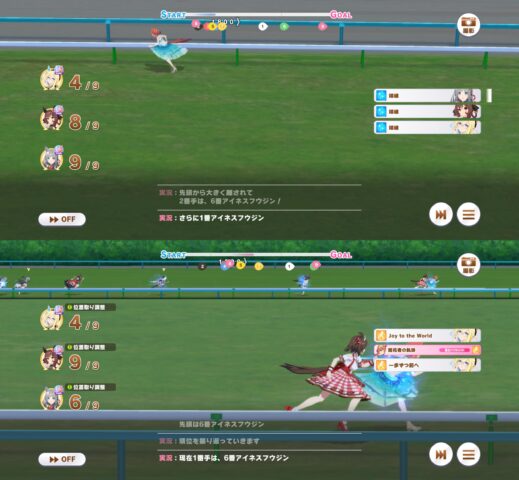 クリトプロの発動条件が中盤の前半(367-917m)で回復スキル発動やろ?