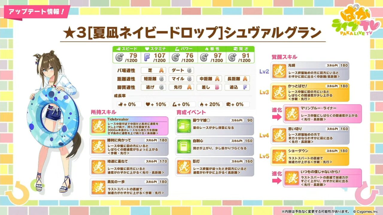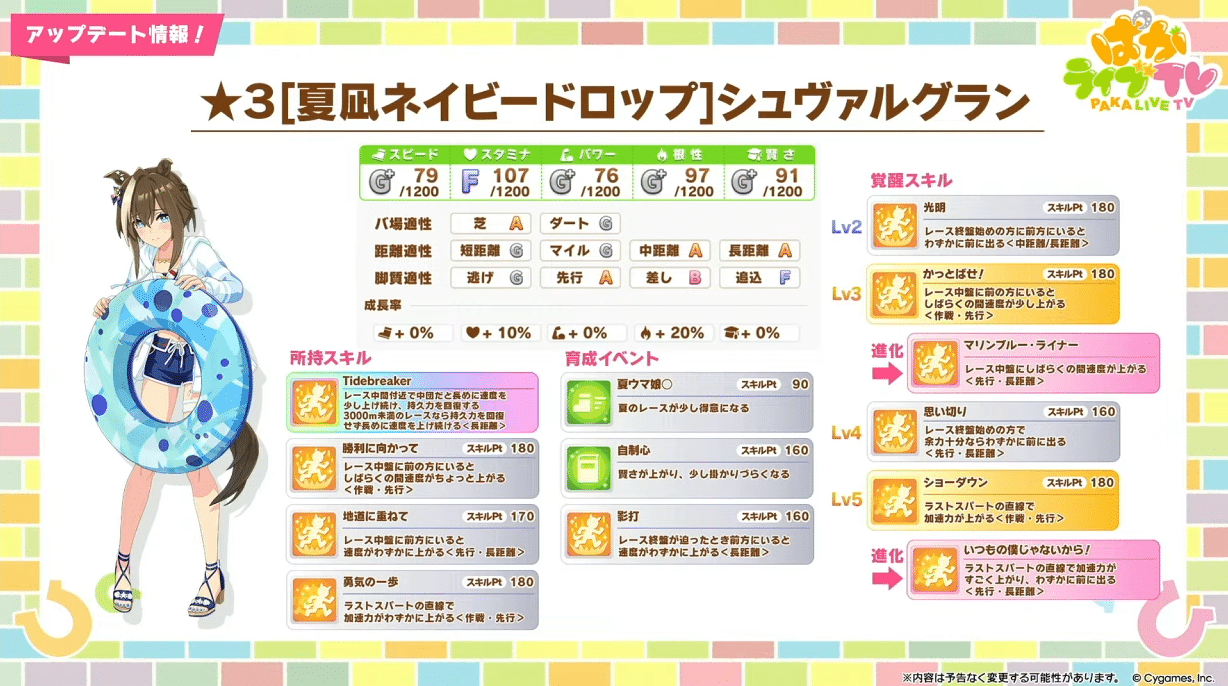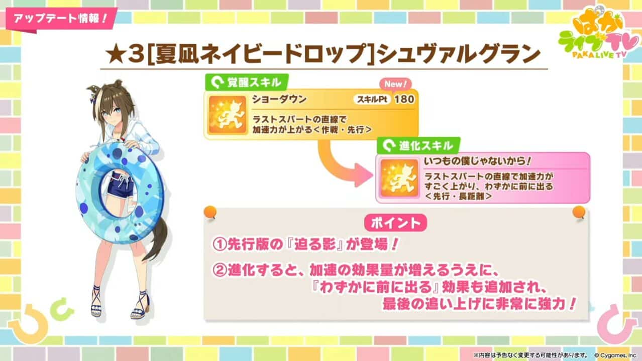 【ウマ娘】次回ガチャ更新2人目の育成ウマ娘は、水着シュヴァルグランキタ━━━━(゚∀゚)━━━━!! 長距離先行特化で「先行版迫る影」も!?