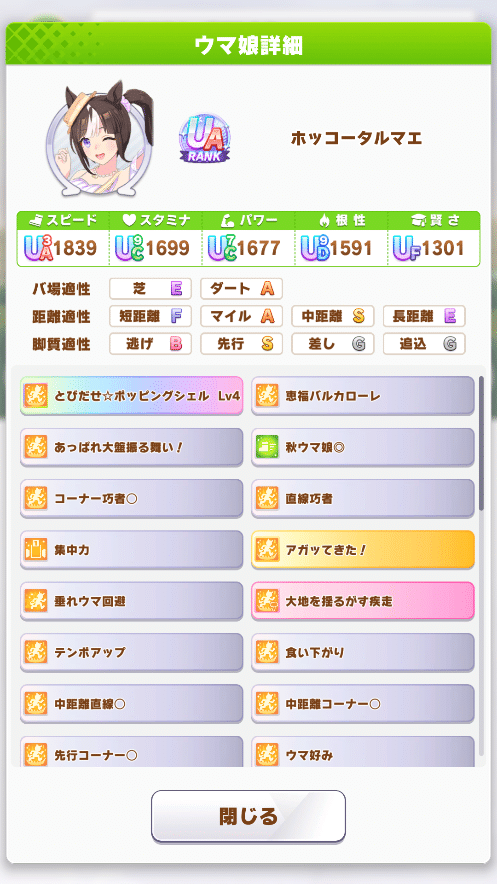 短距離とダートはさすがに専用育成がないとだめだ大敗した
