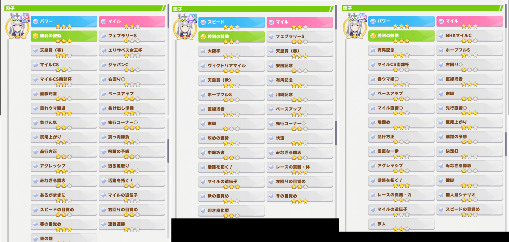 とは言え大差はないし好みとか他の因子とかサポ構成で総合的に判断でええんちゃうかな