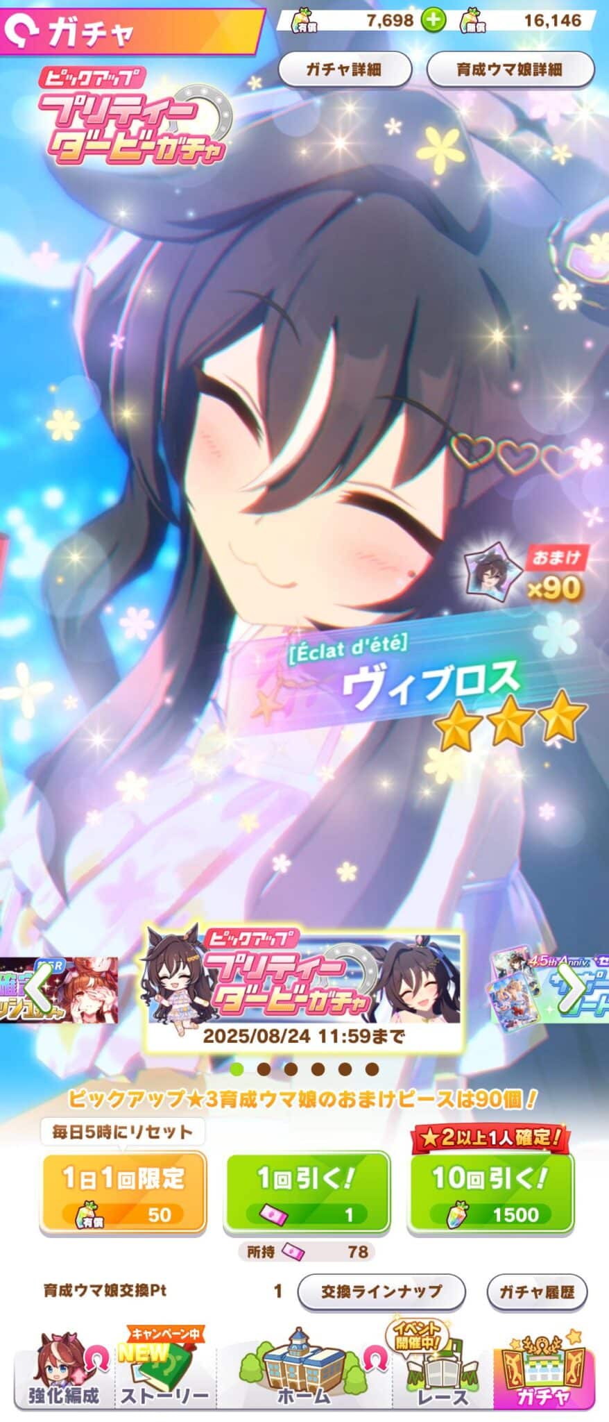 【ウマ娘】魂の水着ヴィブロスガチャ結果www「ガチャローディング長い!これはセレブ!」