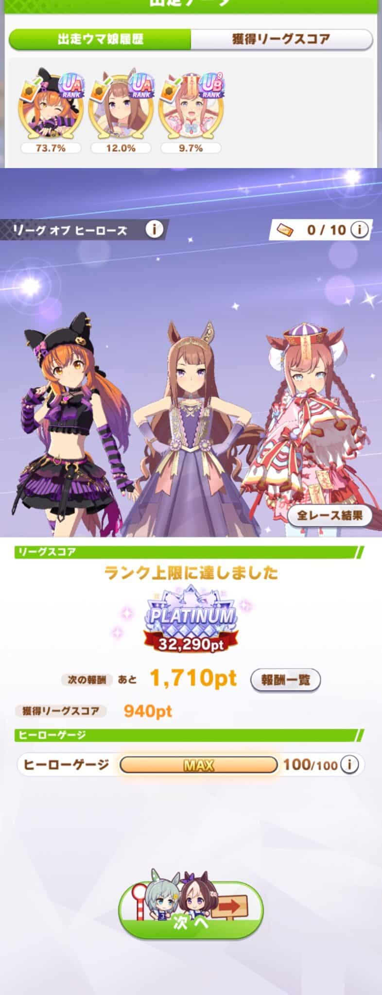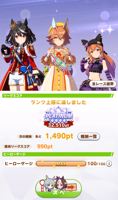 長距離好きなので頑張りたかったんですが、イベスト終了後に受け付け開始だと思ってて育成が間に合わず更に初日で大幅にやられてしまったのでそのままお通夜モードでの消化でした…w