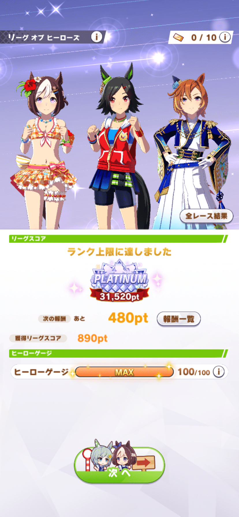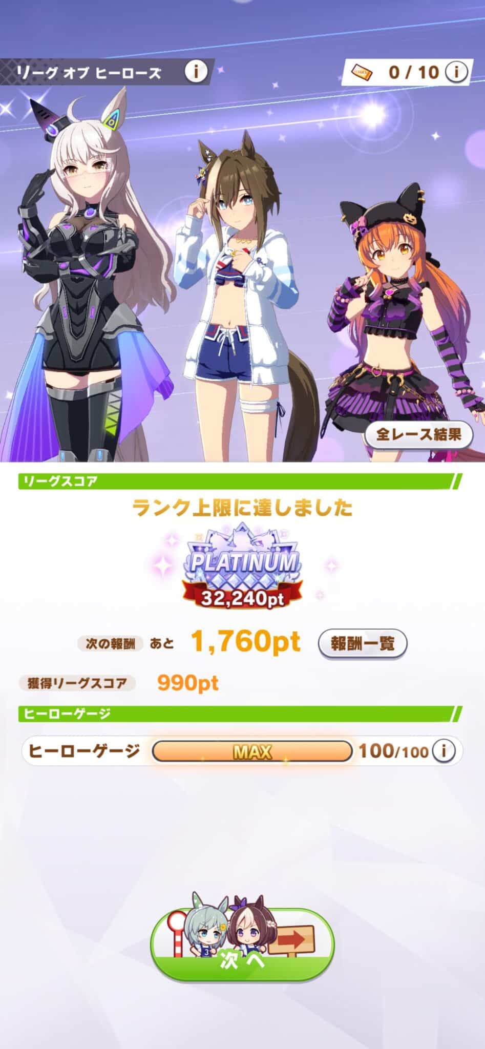 • ヴィルシーナ、水着シュヴァルグラン、猫マヤノトッヴガンのヴヴヴ三姉妹で33150点で終了