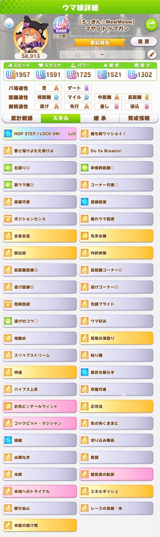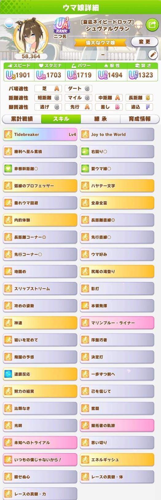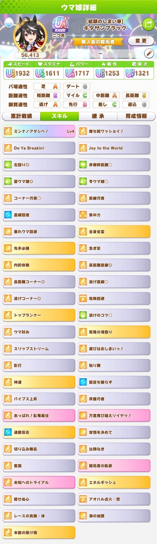 最強の最推しを作ろうとタフネス百数十個費やして切れ者個体完全適性個体複数回得るも金スキル完走必須スキルの継承等と噛み合うことなく泣く泣く最初の方に育成した妥協の子で出走