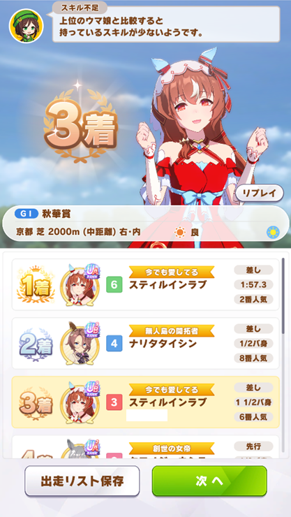 【ウマ娘】今回のチャンミとにかく最内回ったスティルが勝つゲームな気がする…。