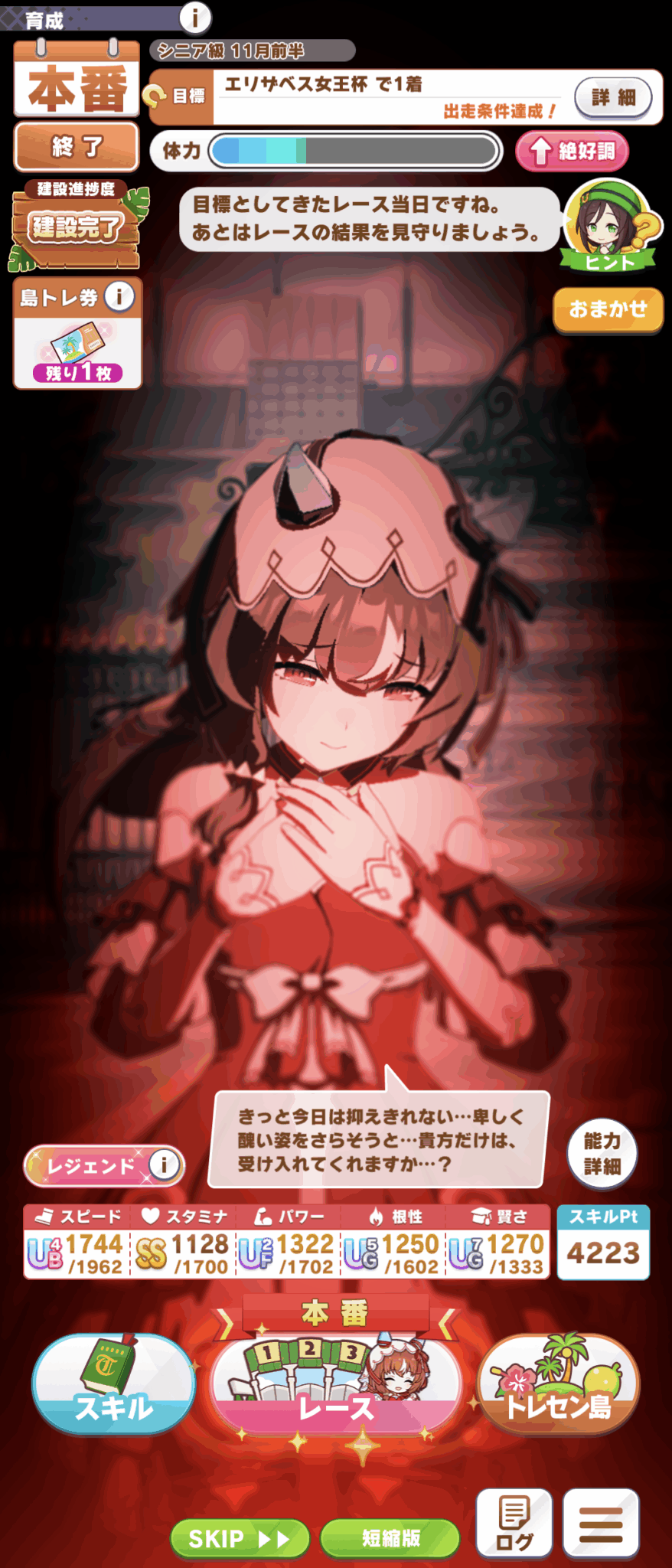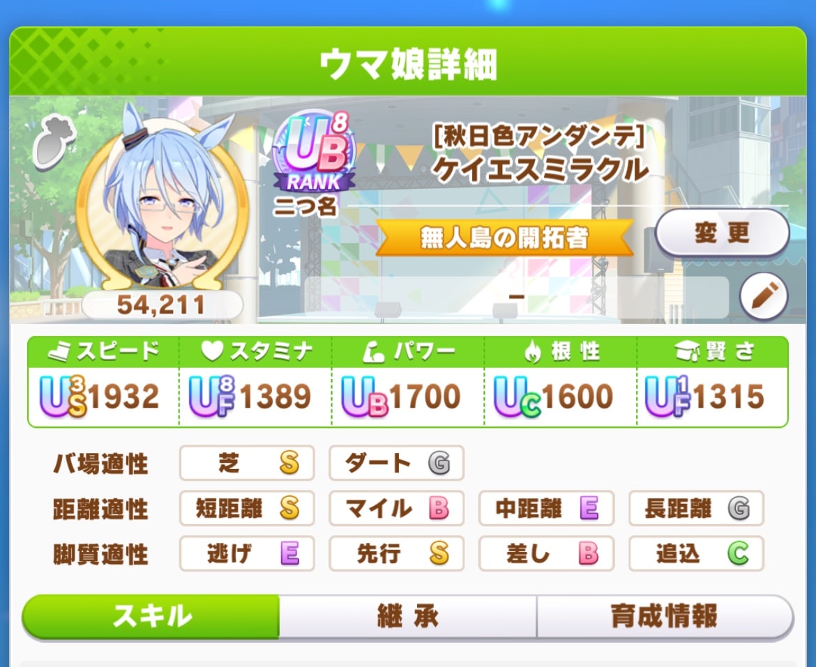 今回スティルキレ厳選やって成功(スキポ6700)したけど、決勝勝ったのはキレてないラヴ(スキポ7200)だったわ