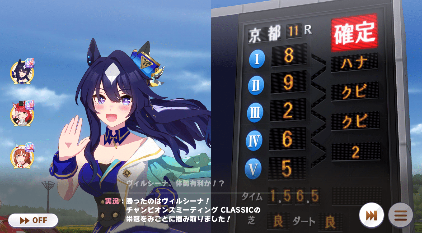 画像を見る限りシーナは先行なので、因子に仕込むのに苦労したけど直滑降が最速発動すりゃ王手の1.5倍位か?