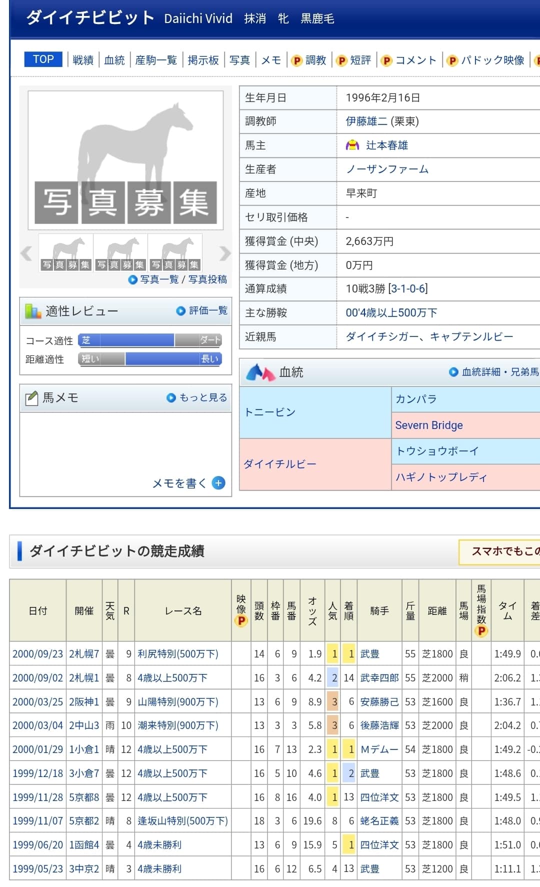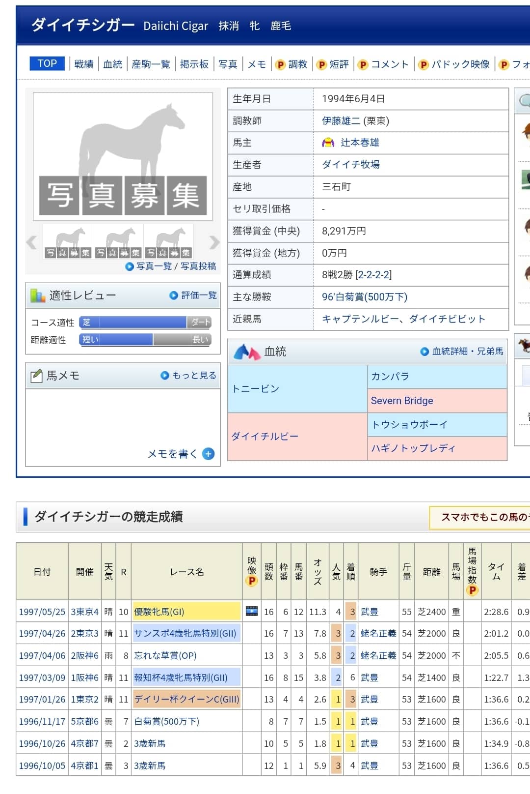 特にダイイチシガーの方はドーベルのオークスで3着だったりそこそこ期待の娘だったんだよな そっから出走しなかったけど…
