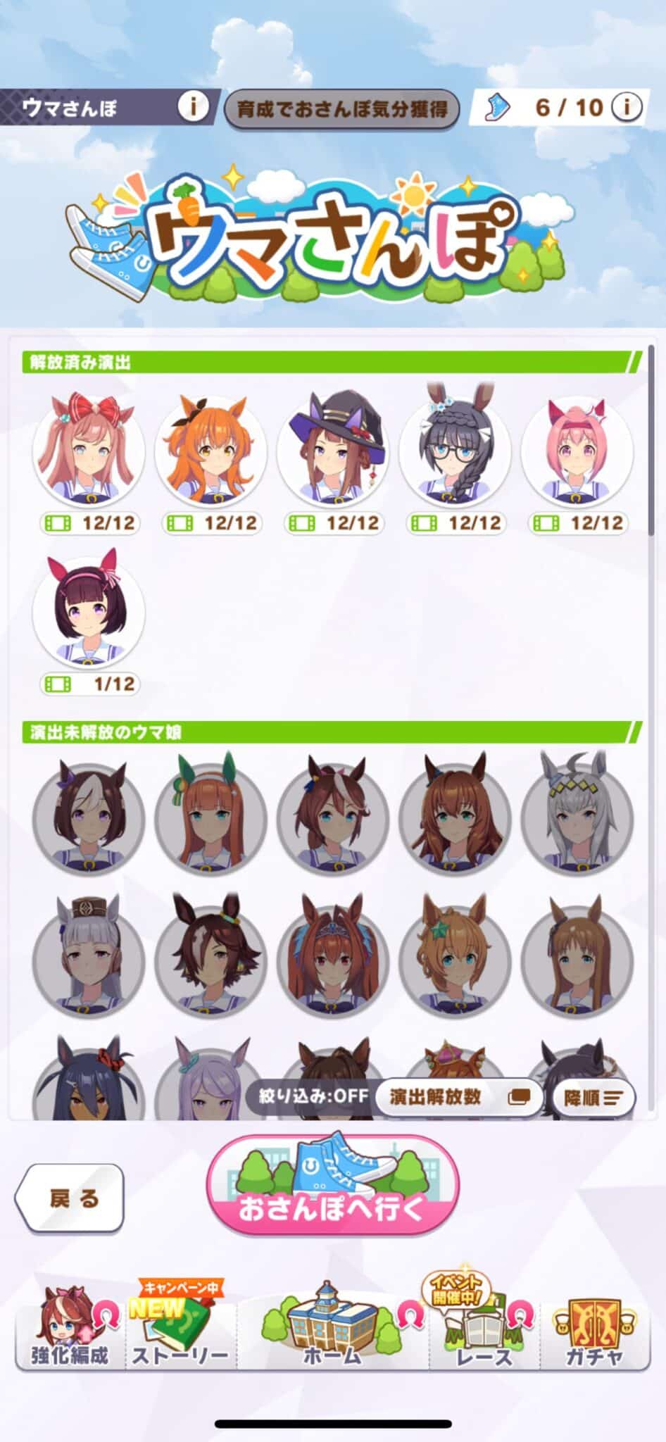 うまちんぽは面白そうな演出ありそうなところから埋めてたけど普通に+4人フルコンプできるぐらいに経ったな