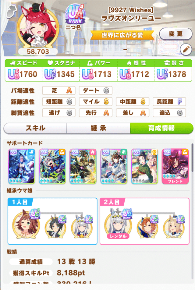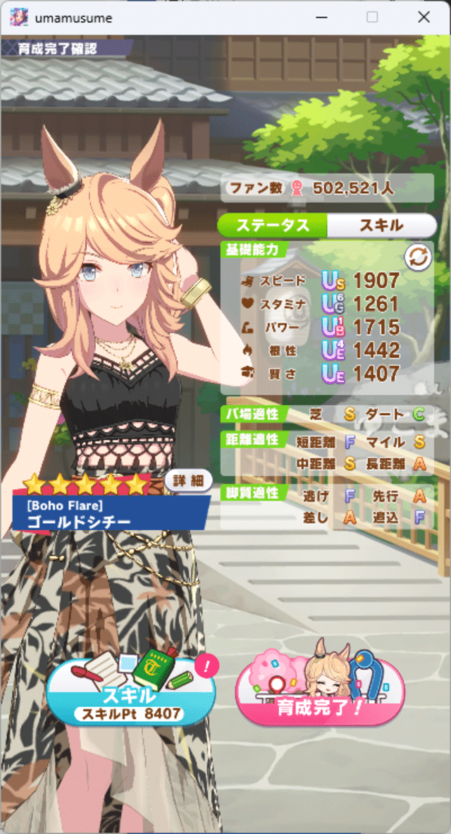 最後間違えてスタ踏んじゃったけどスピ踏めば1900は行ってたからそんなに困らんと思う