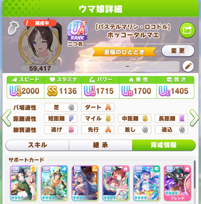 因子はスピード15パワー2だし道中りじちょの好感度上げにクソ練習踏んでいけたから割と余裕あるかも人数多いとこの練習踏んで遊んでたからかもだけど