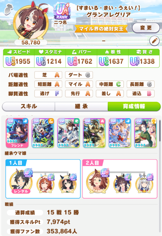 あとは継承がもっと上振れてくれたらまだ強い個体が作れたけどワイにしては十分かな