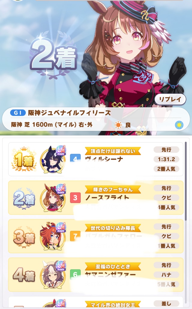 シーナ勝たせたいと思って先行アンスキであと後ろ脚質2人にしたけど、