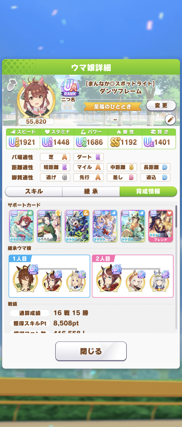 オグリを気持ちよく育成して欲しいからまめちんをちょっとだけ強くした