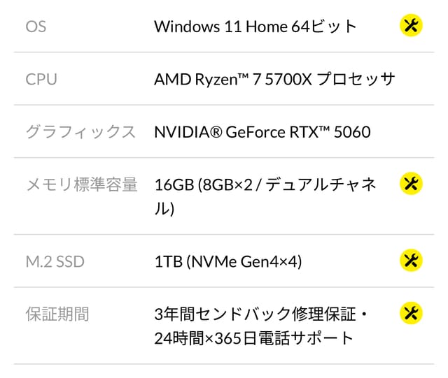 あと安いデスクトップPCあるあるだけど電源しょぼいの使ってることが多いのでそこも注意かな。格安PCの大半は大体M/Bと電源ケチって安くしてる。