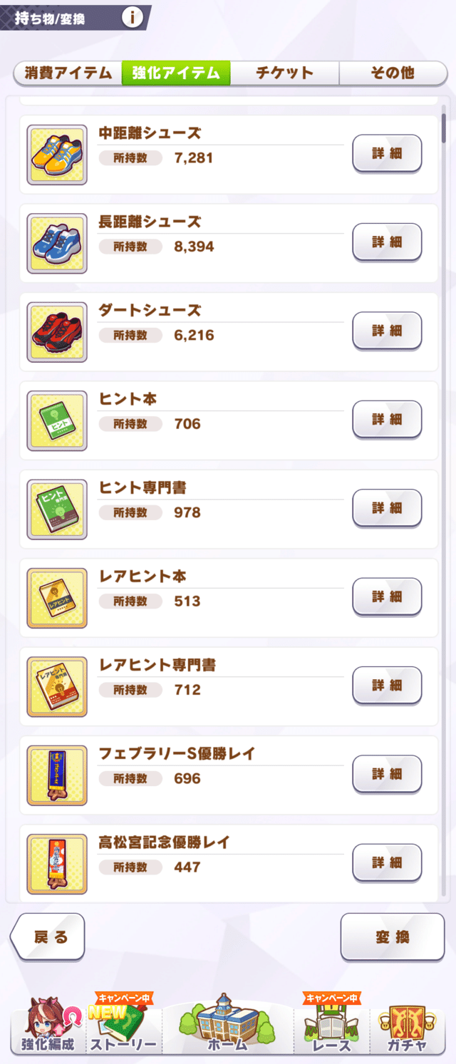 イベント以外の毎月の蹄鉄系とかここ半年くらい交換してないけど緑本て数百くらい余ってるしな