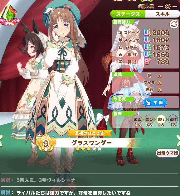 • 野良で強かった差しのサポカ編成コピーでスキル構成、ステ差誤差、距離S付きグランが