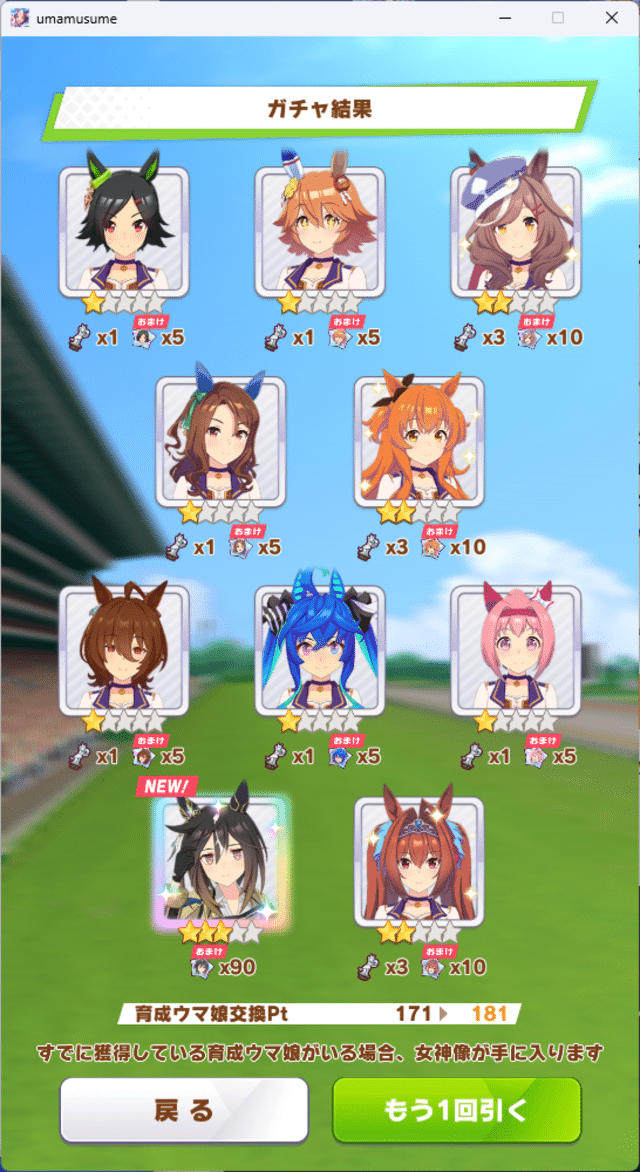 久しぶりにガチャがきついと思える月だ・・・私はオグリもステゴもとりあえずおはガチャ民で暫くステイ(ゴールド)