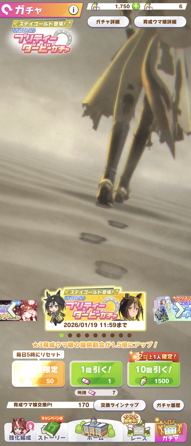 まあガチャ開催期間が来年の1月19日までになってるのがまだよかった