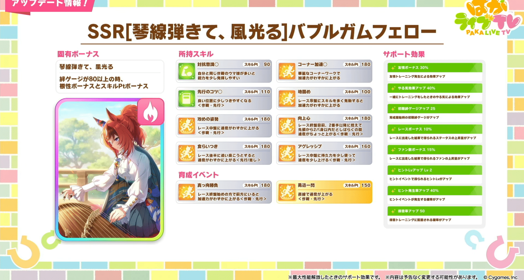 【ウマ娘】ストイベ配布サポカはSSRバブルガムフェロー!! さて、正月後実装の3人目は誰になるかな?