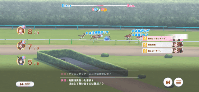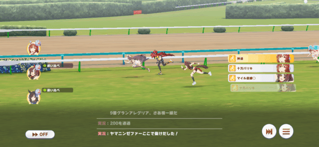 終盤突入!グランがちょっと後ろにいるかな?というくらいで悪くない入り。あとは追い比べ発動を祈るのみ…