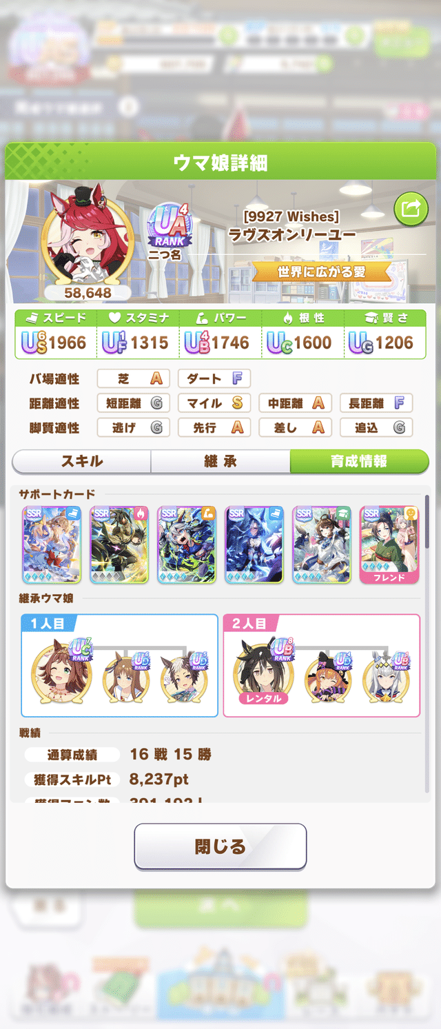 私はまだステゴ引けてないので今は親にする中長距離のスぺとオグリを周回中。需要ありそうなのができたら公開しようと思います。