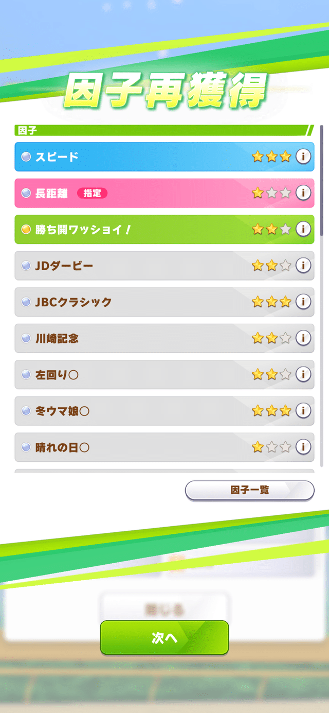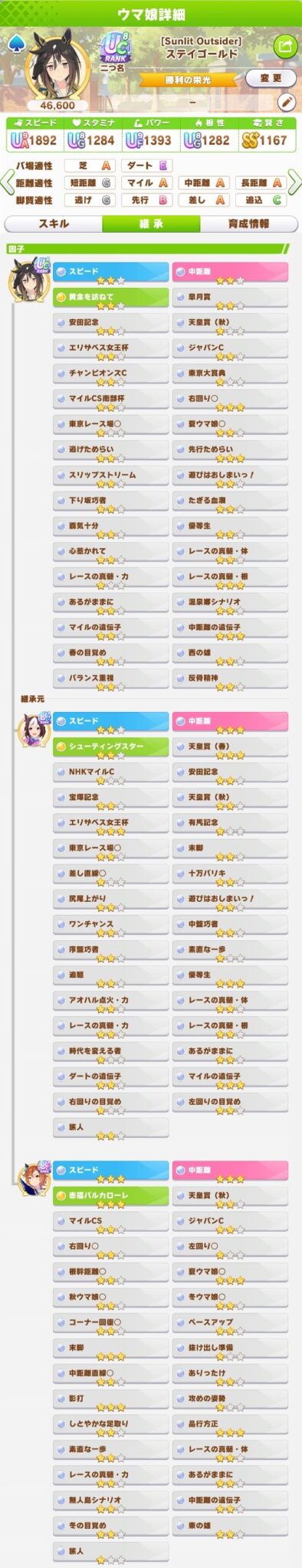 そもそも健常者はわざわざ因子周回なんてせず、本育成で生まれたスピ9距離9を使うのだ