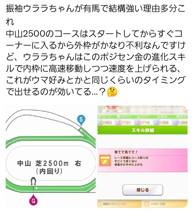 スタートから最初のコーナーまで短いから明らかに外枠不利になるし内枠でもコーナーでスキル発動できなかったらズルズル下がってっちゃって埋もれることあるし