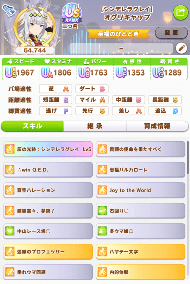 ルムマにいるUS以上のオグリって大体切れててめちゃくちゃ強いから、真似しよ!っていざ育成してみたら()ってなるw