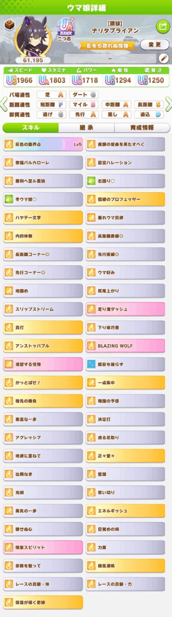 ただやっぱり内的体験+真打も強いからサポカ完全体な奴らに太刀打ちするのが結構難しいわ