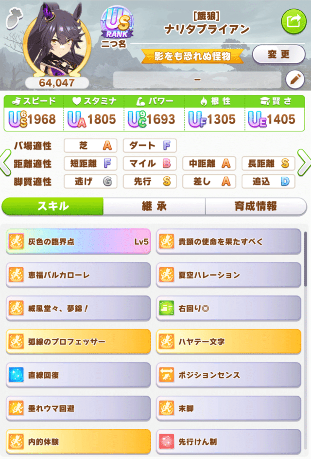 【ウマ娘】先行だとアグレ真髄体で10%減少…長距離レースはやっぱりスタデバフが強力だな。