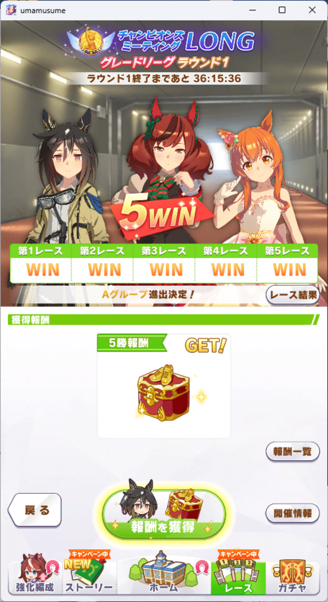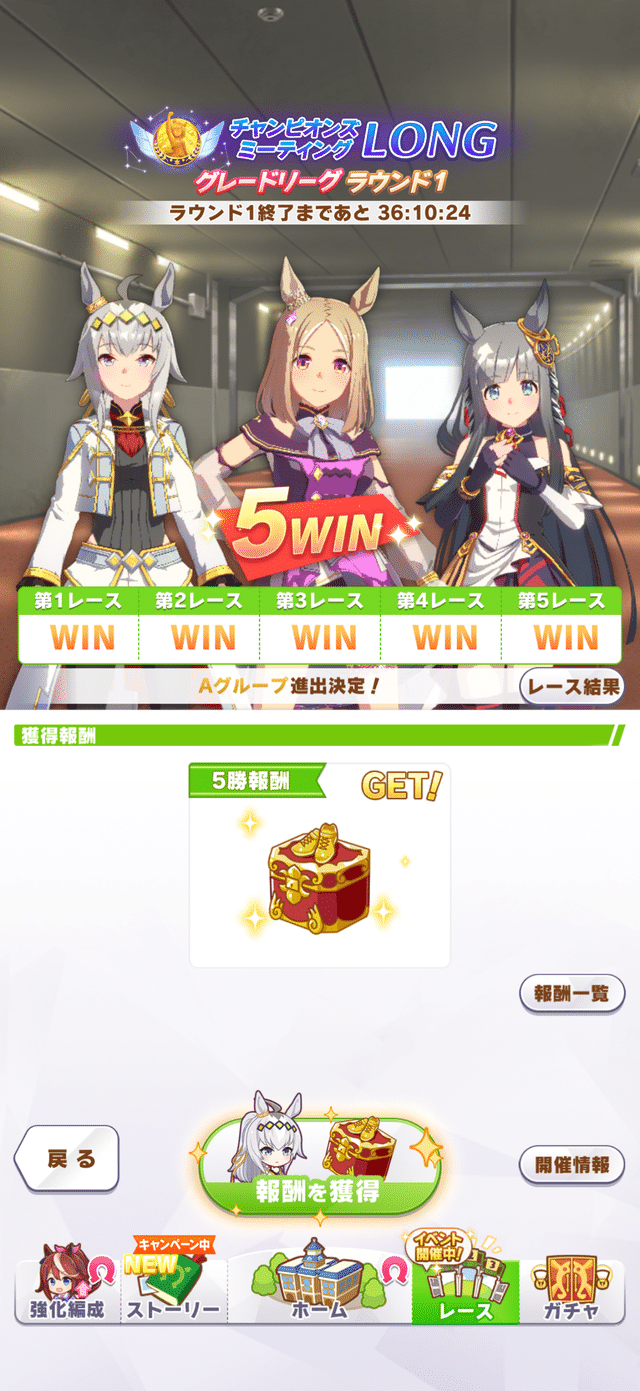 私は初日20戦17勝でした。新衣装ローレルが結構勝ってくれる。