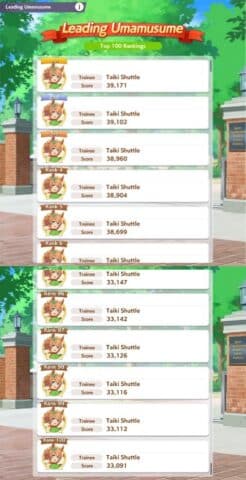 1位は日本版より1000Pt強も高いほかランキングの上から下までタイキさんで埋め尽くされており100人中71人もいます