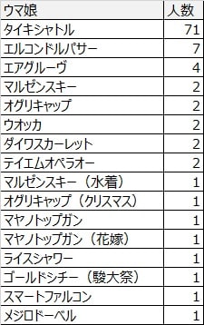 日本版でも上位入りしてたエアグルーヴさんやエルちゃんがやや多いですがまさにタイキさんは桁違いです
