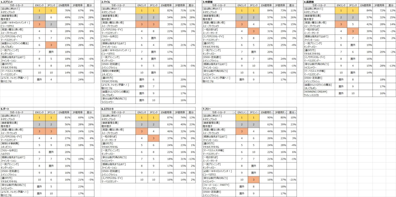 日本のランキングと比較するとキタちゃんスイープさんのスピード2枚が+約10%