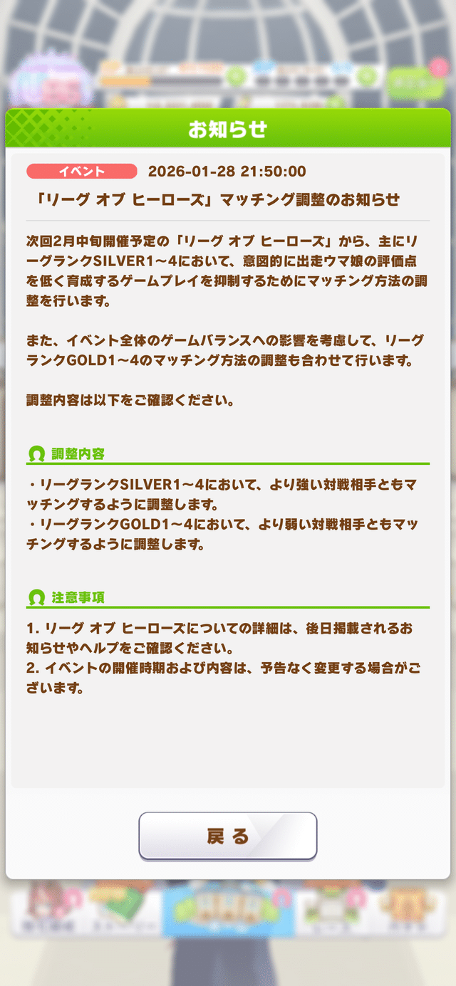 【ウマ娘】「リーグオブヒーローズ」マッチング調整のお知らせ。←「一体何が始まるんです…?」