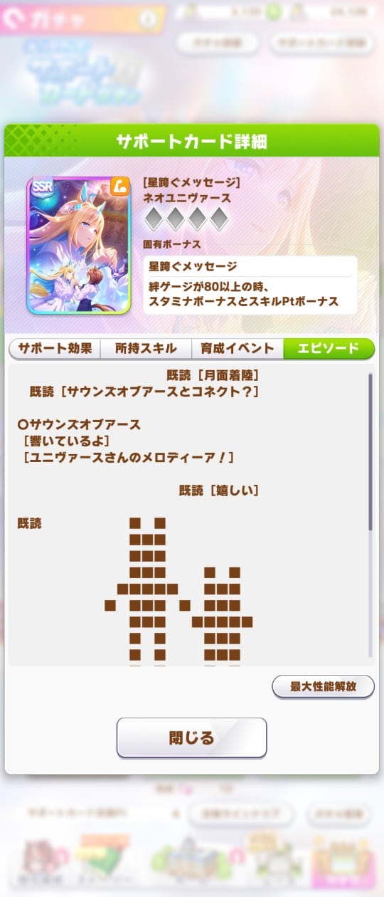 【ウマ娘】新しいネオユニは無凸でもスキポ2らしい。これは欲しくなるな…。