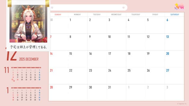キャラの性格を丁寧に再現されたカレンダーいいよね