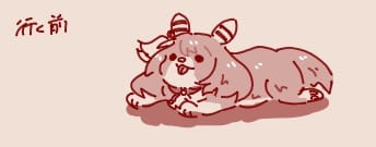 去年の春頃にミラ公がカタログに現れてそのスレでソファとかクッションからずり落ちても抱っこされるまでそのままでいそうって言われて描かれたのが確かこれ