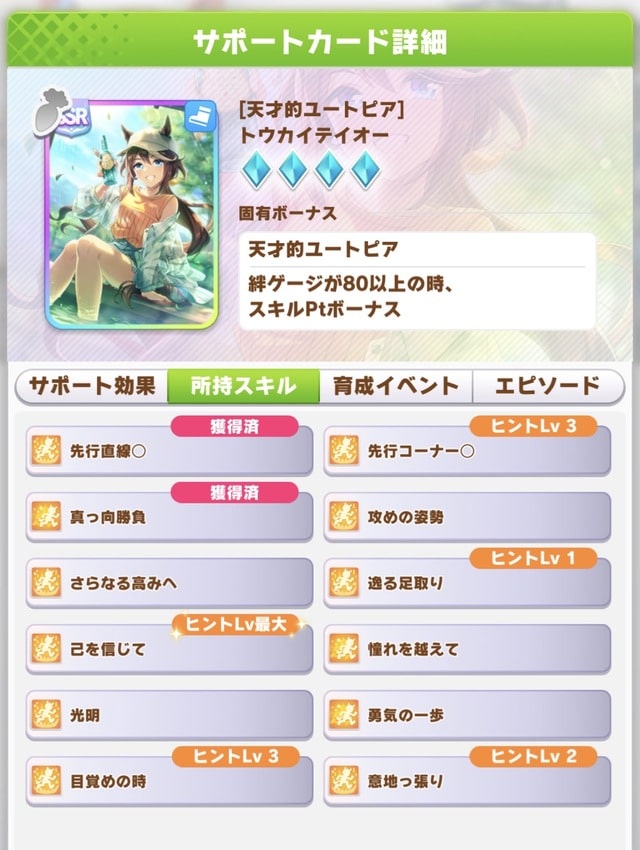 ヒント取得の仕組みも温泉って全サポカの空きヒントからじゃなくて、特定サポカから先ず選ばれる分、友人を除く1/5の偏りも地味に効いててキツイ。
