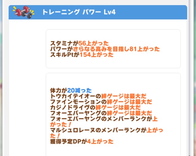 トレで爆発させないと次のランクに進まないんですね。気づかず振り返り前にお出かけしたら何も起きずGOOD評価でワイプして気づいたやつ